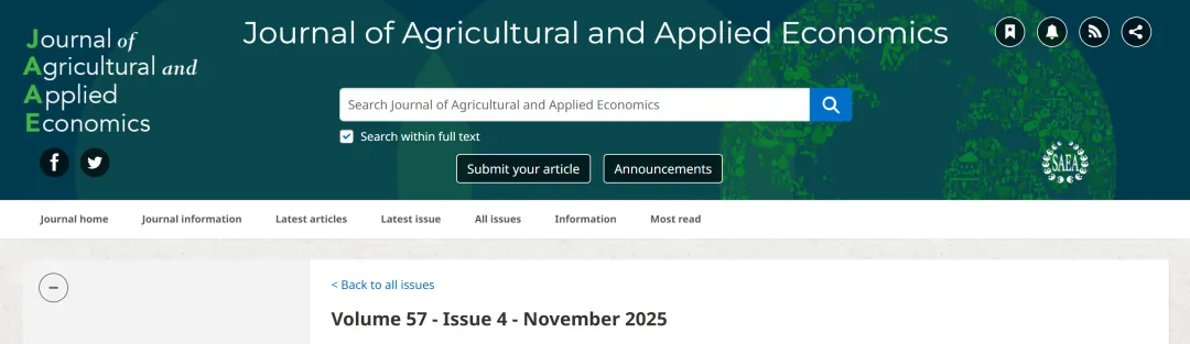 JAAE《农业与应用经济学》2025年第57卷第3期目录及摘要