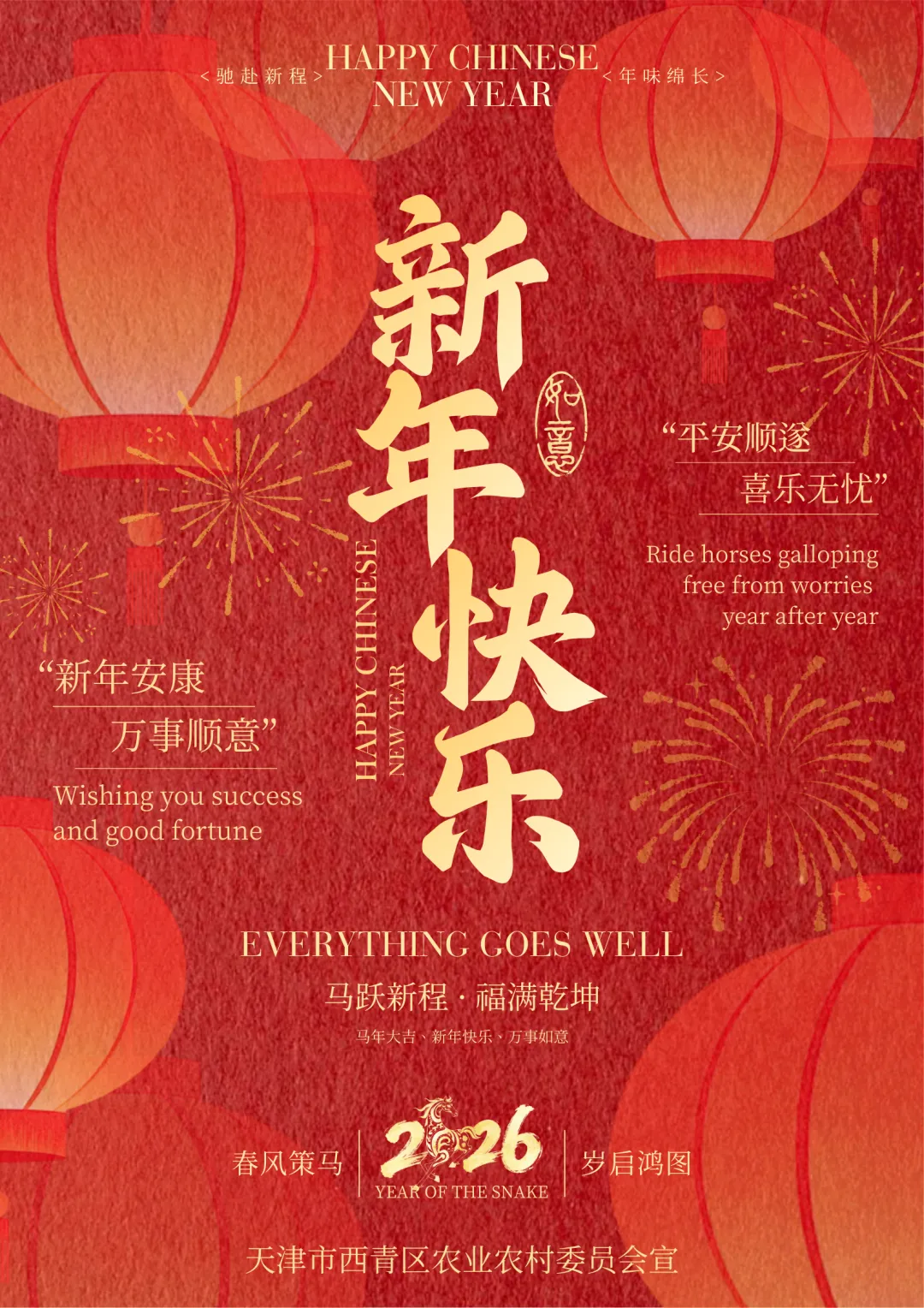不负韶华,且趁春风策马行——西青区农业农村委祝您新年快乐,马年大吉!