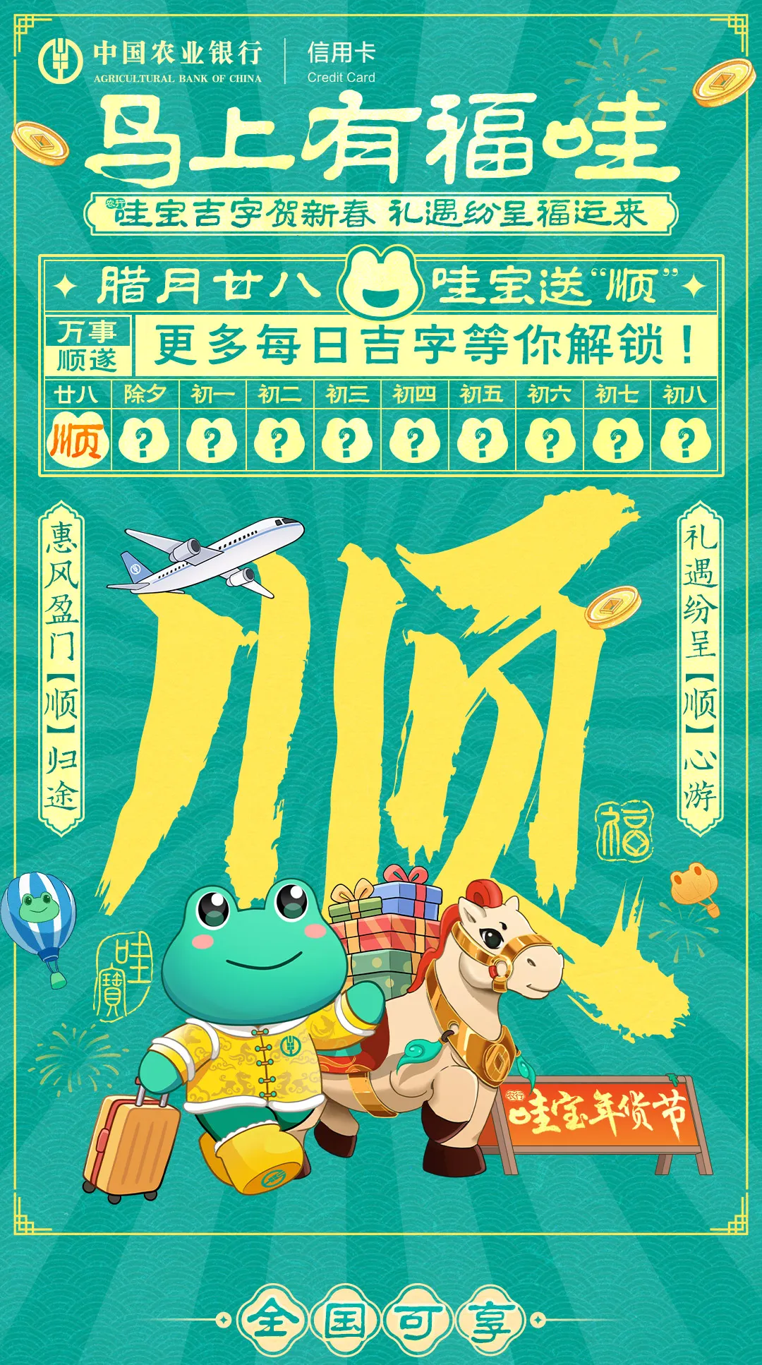 从今天起,哇宝将每日送上吉字祝福和缤纷礼遇伴您欢度春节
