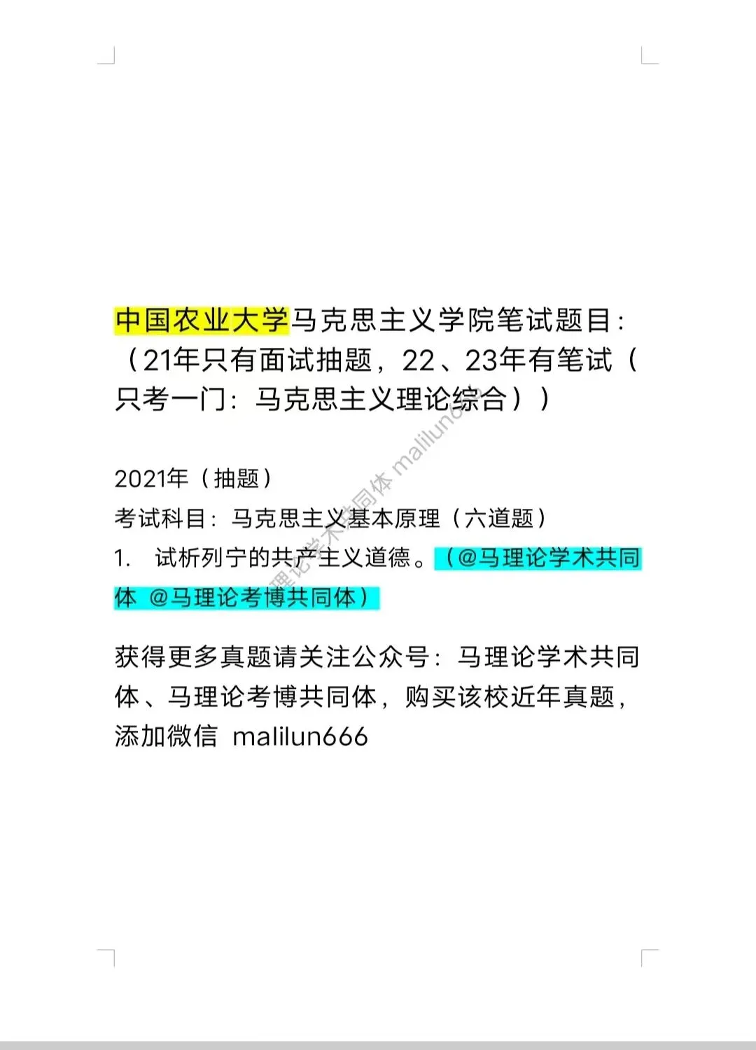 ●中国农业大学马院考博必读:不必须核心、985、过四级!