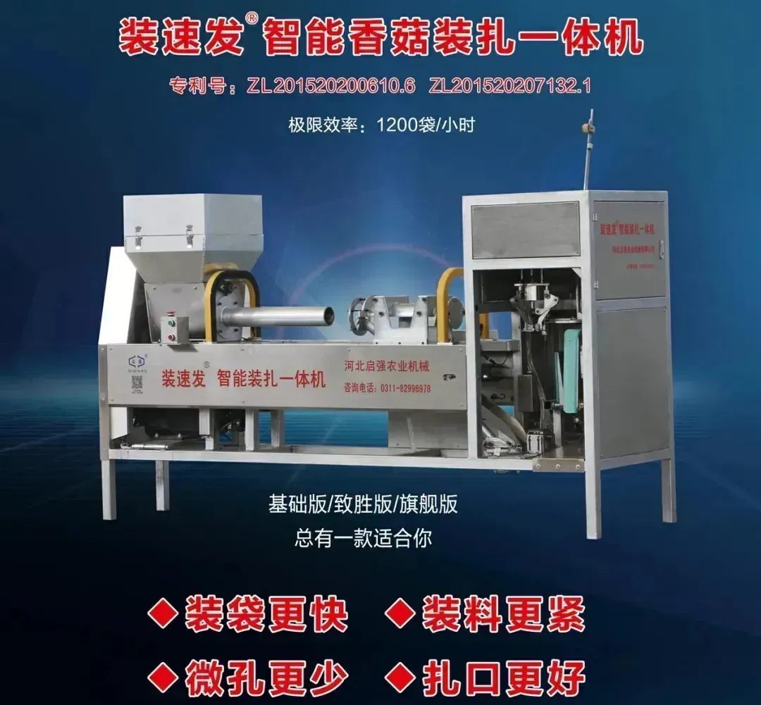 这一年,启强传统优势装备持续发力,为食用菌产业高质量发展注入强劲动能。智能香菇装扎一体机精准攻克行业装袋难题,实现装袋更快、料袋更紧、微孔更少、扎口更优,核心部件均选用优质材质,绞龙主传动轴配备进口密封圈,免维护“黄金”链条搭配瑞典原装轴承,高强度锰钢绞龙加持硬质合金螺旋头,耐磨性成倍提升,可胜任千万袋级的高强度、高频次装袋任务,完美诠释“买着贵,用着省”的产品核心理念。菌棒生产线用料坚实厚重、经久耐用,成为大中型基地工厂化制棒的不二之选。公司历经两年多潜心研发、反复打磨的双模套袋机,更是成为老客户的设备升级利器,无需淘汰原有老设备,仅需稍作改造即可完美匹配,装袋效率稳定达每小时600袋。其搭配启强拌料流水线、一体式节能灭菌柜,可搭建起拌料—装袋—灭菌全流程自动化生产线,一名工人即可轻松照看5-10台设备,实现解放双手、大幅降本增效,以高性价比让老客户轻松享受自动化发展红利。更值得期待的是,启强一体式全自动装袋扎口机正紧锣密鼓调试中,即将震撼面市。新一代设备在稳定性、匹配性上实现全面优化,预计稳定产能可达每小时700袋以上,将为食用菌行业带来全新的生产效率升级。