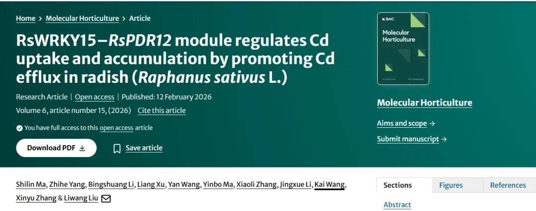 近日,南京农业大学作物遗传与种质创新利用全国重点实验室、园艺学院柳李旺教授团队在国际期刊《Molecular Horticulture》在线发表了题为“RsWRKY15-RsPDR12 module regulates Cd uptake and accumulation by promoting Cd efflux in radish (Raphanus sativus L.)”的研究论文,系统揭示了萝卜中一个关键分子模块如何通过调控镉(Cd)外排机制,有效降低肉质根对这一有毒重金属的吸收与累积。
