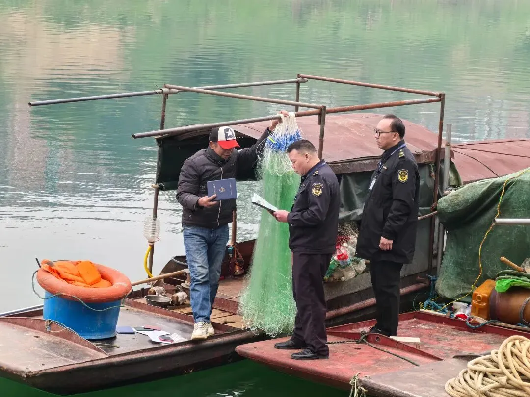 渔政整治不松懈,守护水域生态美。依托辖区江河、水库等水域资源,执法人员严格落实渔业监管要求,重点排查非法捕捞、使用禁用渔具、渔船“带病”作业等行为,对照“六防”要求检查渔船船体、通导设备及消防救生设施,宣讲禁渔规定和水生野生动物保护法规,严禁春节期间违规捕捞,守护水域生态平衡,切实防范渔业生产安全隐患。截至目前,共计检查渔船38艘次,发现2艘渔船存在一般安全隐患。