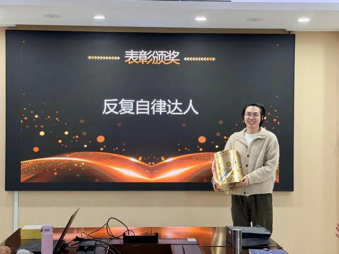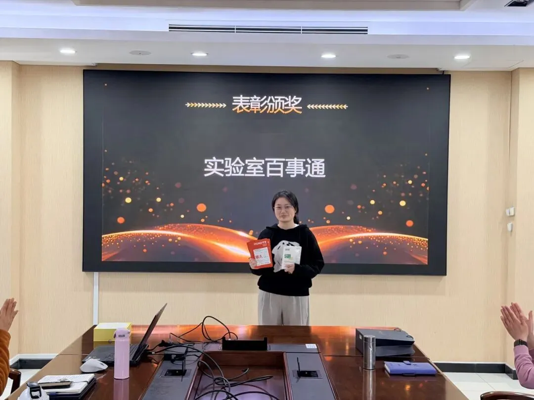 为表彰大家在2025年为团队做出的贡献,由王朝阳博士后代表李老师为大家颁发了符合个人形象的各类奖项。