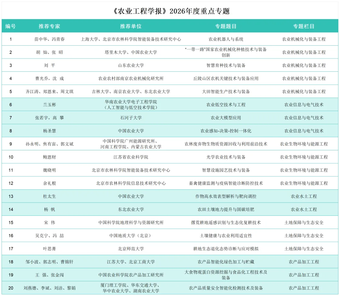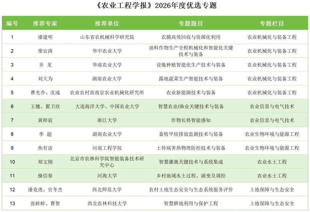 会上,王应宽总编首先作工作汇报,全面介绍了学报发展现状、卓越计划期刊建设规划及年度选题征集情况。他指出,《农业工程学报》经过 40 年创新发展已成为农业工程领域最具国际影响力中文期刊,农业工程学科Q1区期刊,还入选中国科技期刊卓越行动计划-中文领军期刊。2026 年为了高质量完成卓越领军期刊项目“优质内容建设年”目标,以优质内容建设对标同学科国际一流期刊,已征集到各位编委和专家们提交的 45个专题选题,涵盖农业机械化与装备工程、农业水土工程、农业信息与电气技术、农业生物环境与能源工程、土地保障与生态安全、农产品加工工程等6个学科方向,此次评审旨在筛选出面向世界科技前沿和国家战略、紧扣科技创新与产业创新热点、贴近国家现代农业重大需求的优质专题。