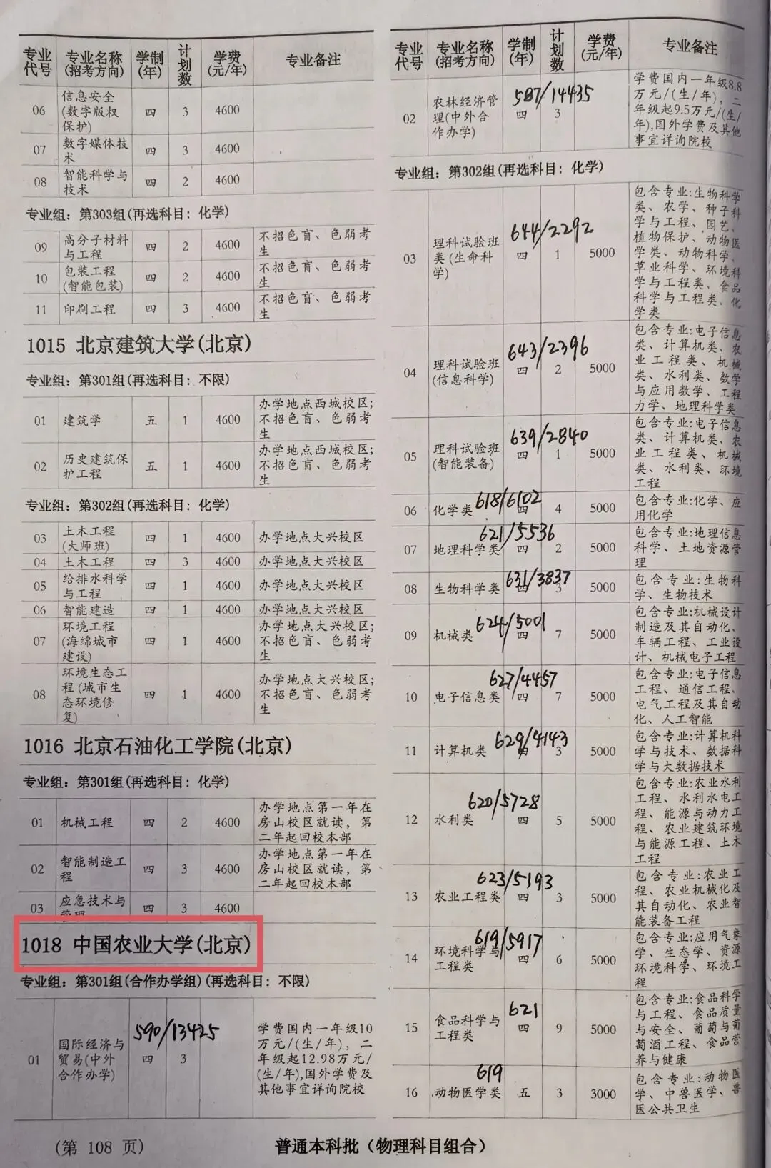 2025年,中国农业大学在山西省物理类投放了三个专业组。