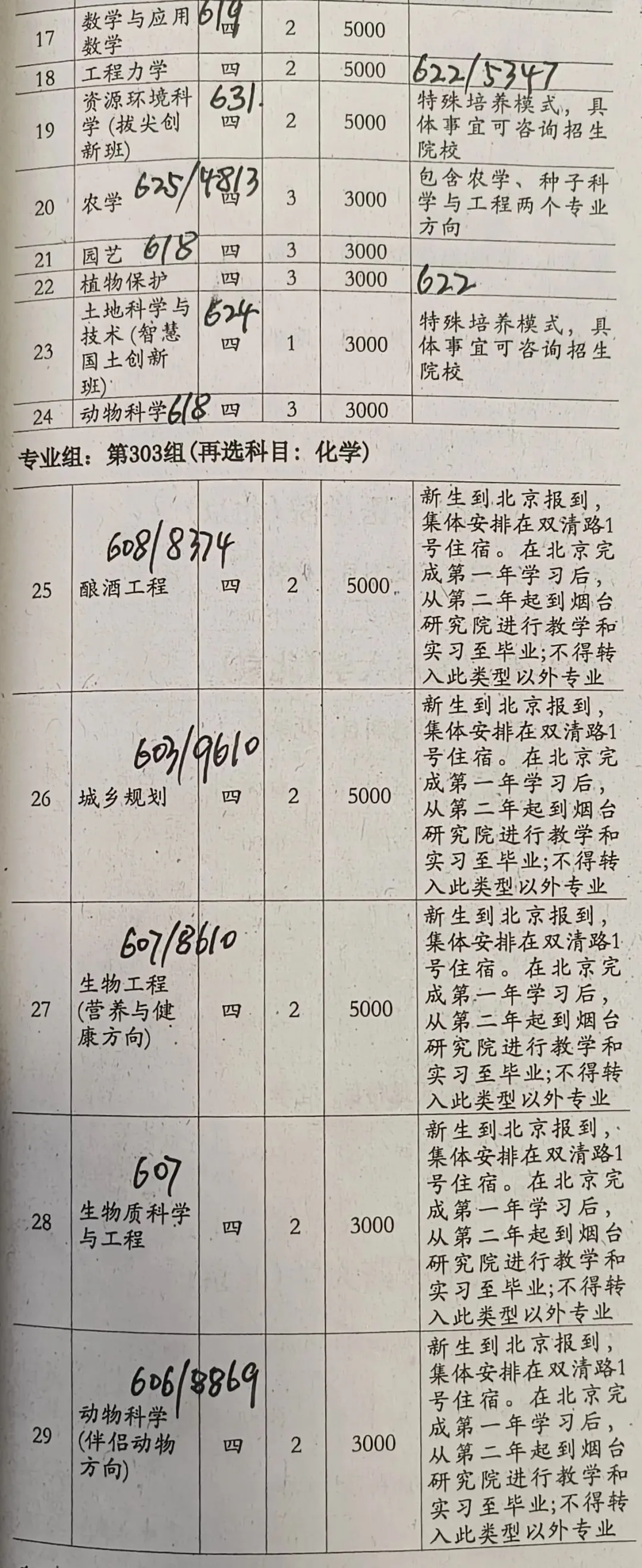 第303组是烟台研究院组,共有5个专业,录取新生在北京报到,安排在双清路1号北京培黎职业学院学生公寓住宿,日常教学由东校区负责。在北京完成第一年学习后,从第二年起到烟台研究院进行教学和实习至毕业。转专业时只能在烟台研究院专业内进行。最低录取分数是城乡规划603分/省排名9610,最高是酿酒工程608分/省排名8374。