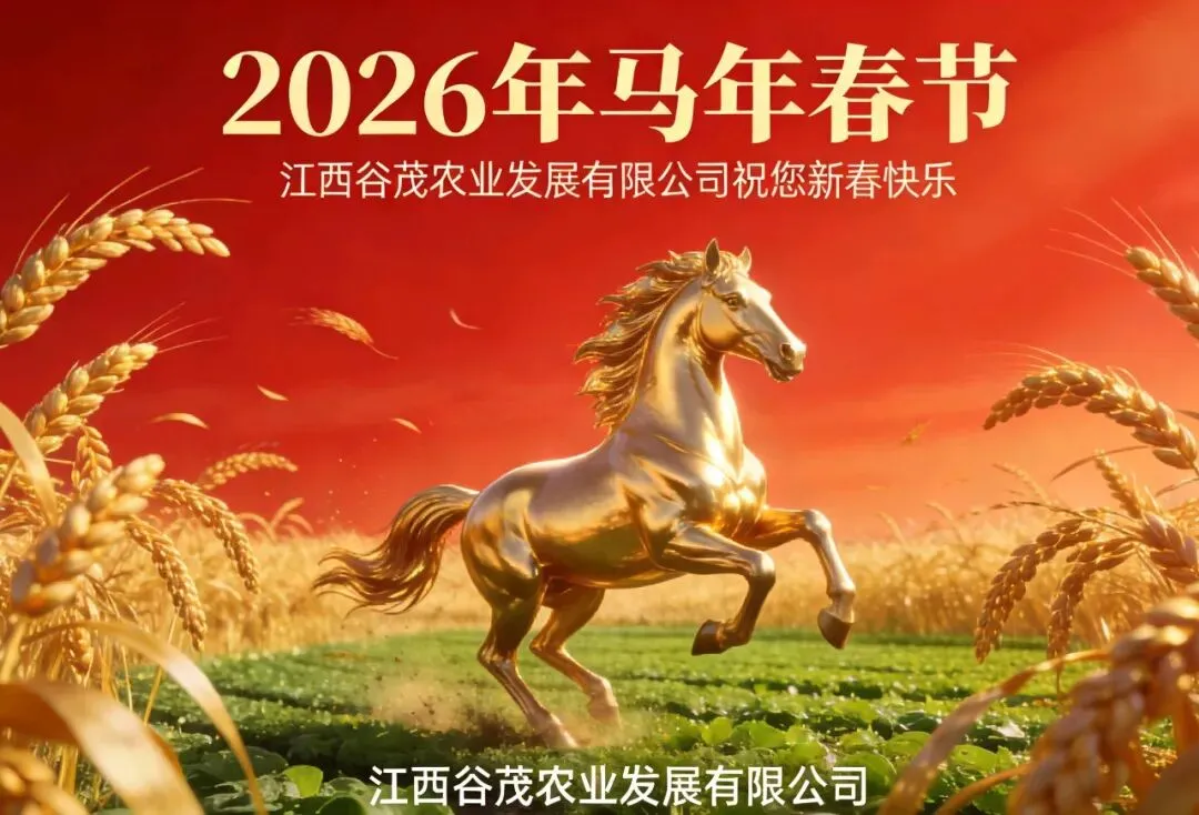2026丙午马年新春佳节即将来临,江西谷茂农业发展有限公司向长期关心支持我们的各级领导、合作伙伴、广大农户与各界朋友,预祝您最诚挚的新春祝福!