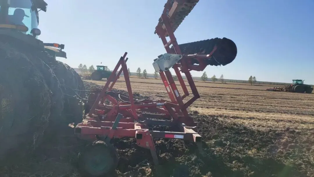 格兰联合整地机原装两排横梁升级为三梁加装液压折叠耙满足复杂作业条件,前排深松杆尺与液压耙协同作业,杆尺间距前后错位加大,玉米地残茬通过性加强,为后期整地创造优质条件。