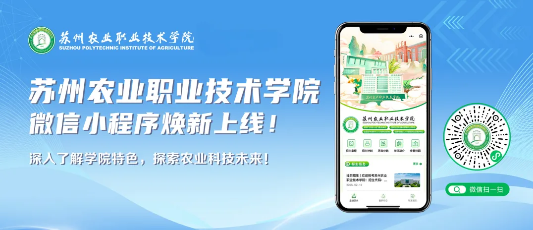 苏州农业职业技术学院始建于1907年,初名为苏州府官立农业学堂,至今已有119年办学历史,被誉为中国近现代园艺与园林职业教育的发祥地。学校现有西园路校本部、相城校区和东山校区,总占地面积1600余亩。共设有园艺科技学院、园林工程学院、经济管理学院、智慧农业学院、环境工程学院、食品科技学院、国际教育学院7个二级学院,47个招生专业面向全国13个省(自治区、直辖市)招生,各类在校生1.2万人,教职工700余人。学校陆续入选国家“双高计划”高水平专业群建设单位、国家优质专科高等职业院校、全国乡村振兴人才培养优质校、国家技能人才培育突出贡献单位、全国示范性职业教育集团(联盟)培育单位。