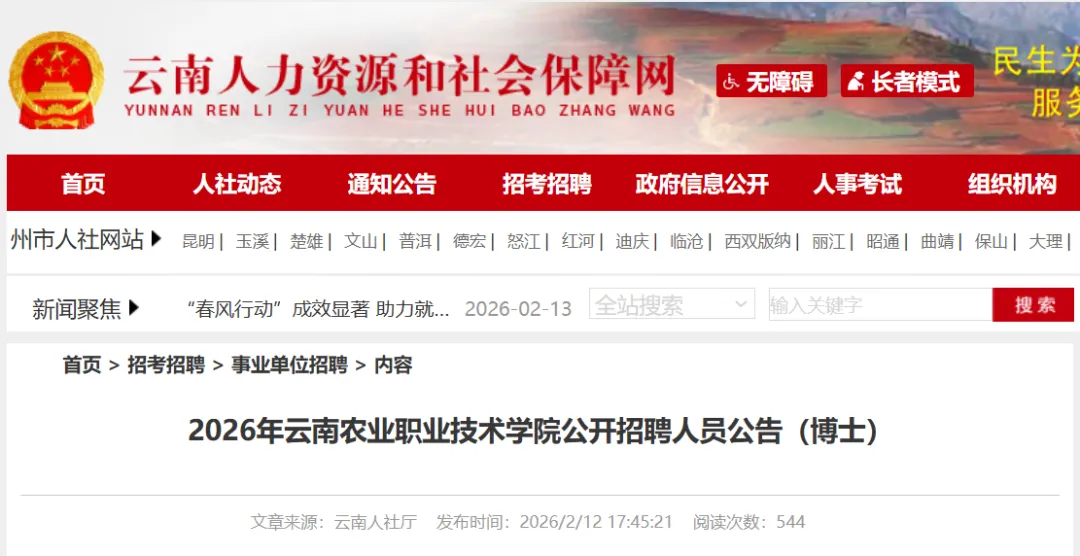 2026年云南农业职业技术学院公开招聘博士5名。具体招聘岗位及招聘条件,详见《2026年云南农业职业技术学院公开招聘博士计划表》(附件1)。
