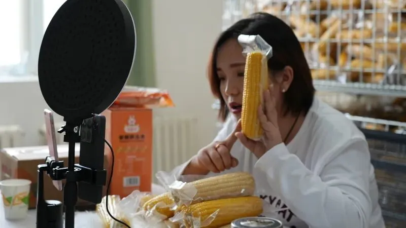 除了抢占线下市场,线上也同步发力。在公司的电商直播间,主播正手持颗粒饱满、色泽金黄的鲜食玉米,向线上观众介绍产品的产地环境、生长历程与风味特点。直播画面中,玉米晶莹透亮、质感鲜嫩,充分凸显出其“软糯香甜”的品质优势。企业构建订单种植、精深加工、线上线下融合销售体系,既保障春节市场民生供给,又以产业实效带动农户增收,为县域乡村振兴注入坚实动能。
