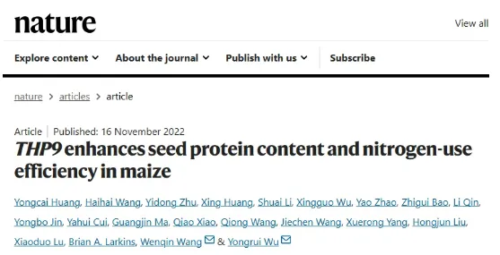 此前,黄永财教授在中科院分子植物科学卓越创新中心巫永睿研究团队做博士后期间,在顶尖学术期刊《Nature》上发表了题为“THP9 enhances seed protein content and nitrogen-use efficiency in maize”的研究论文。经过多年的不懈探索,他们成功从野生玉米中克隆出了一个对提升玉米蛋白质含量和氮素利用效率至关重要的基因THP9。这篇论文也是我国玉米科研领域发表的首篇Nature正刊论文。详情点阅:Nature | 历时10年!巫永睿团队成功克隆野生玉米变异基因 有效提高玉米蛋白含量