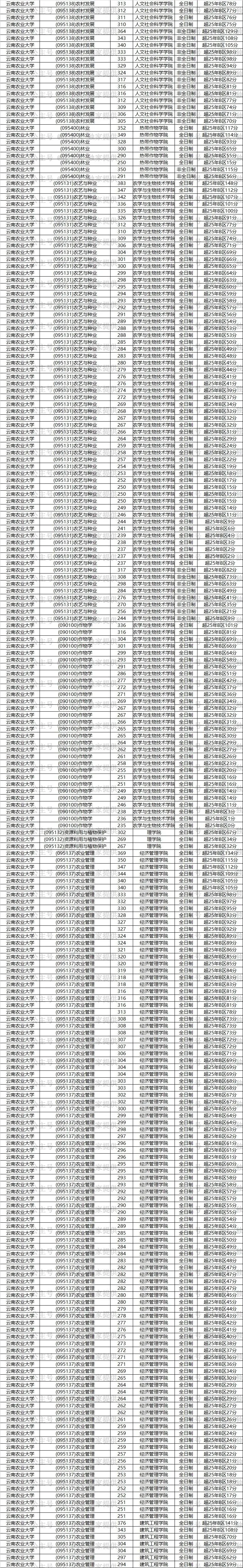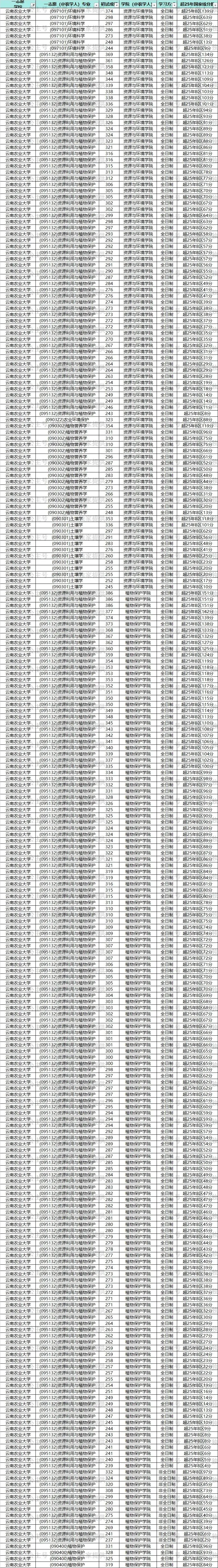 比如安徽农业大学(095131)农艺与种业,(090403)农药学,(090101)作物栽培学与耕作学,(090102)作物遗传育种,(090201)果树学,(090202)蔬菜学,(090401)植物病理学,(090402)农业昆虫与害虫防治,(090501)动物遗传育种与繁殖,(090502)动物营养与饲料科学,(090504)特种经济动物饲养,(090701)林木遗传育种,(090702)森林培育,(090703)森林保护学,(090704)森林经理学,(090706)园林植物与观赏园艺,(090800)水产,(095132)资源利用与植物保护,(095133)畜牧,(095134)渔业发展等专业,23年—25年每一年都招了调剂,那么有90%以上的可能它今年还是会招调剂,那这样的学校就是我们的重点关注对象。