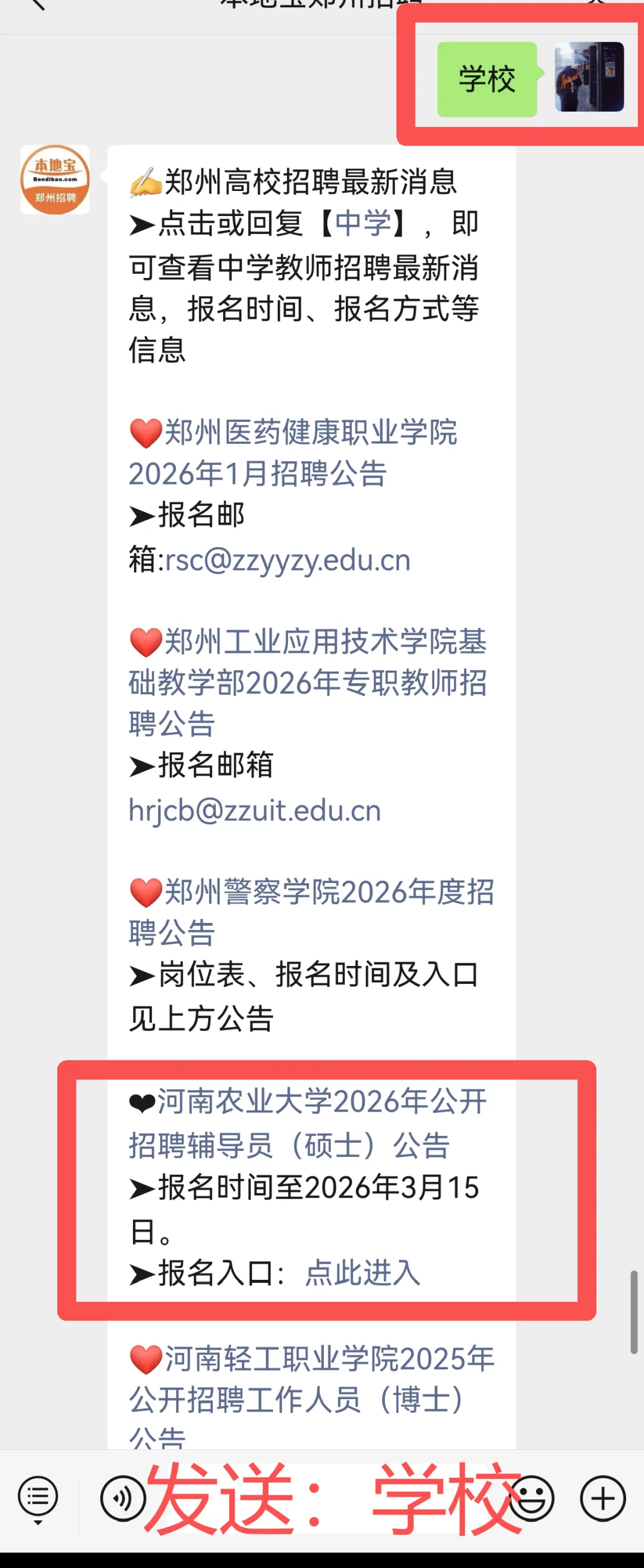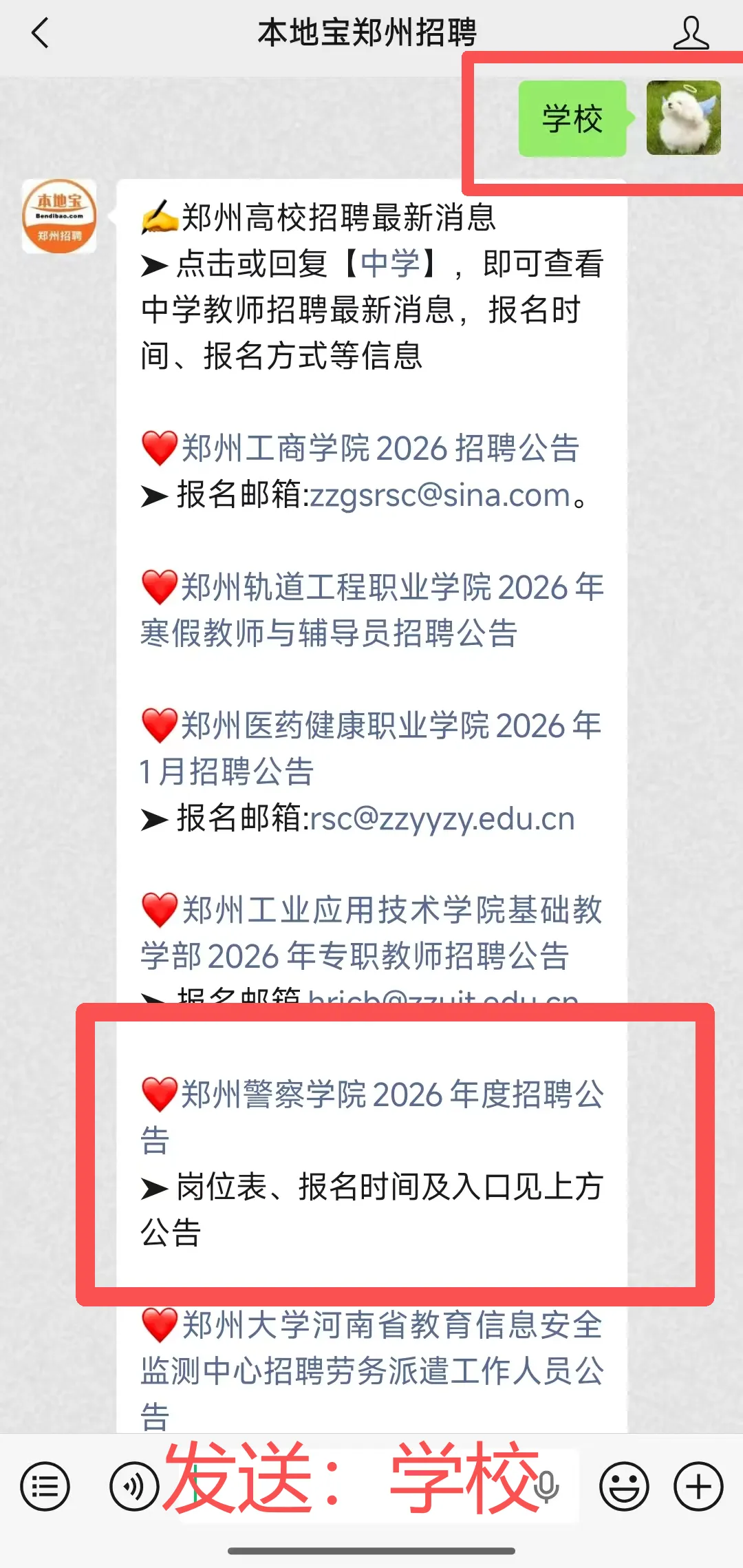 温馨提醒:扫描下方二维码关注【本地宝郑州招聘】微信公众号并在对话框回复【学校】即可获取详细公告内容等