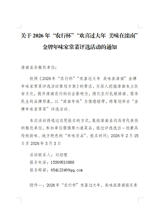 >关于2026年“农行杯”“欢喜过大年 美味在滦南”金牌年味家常菜评选活动的通知