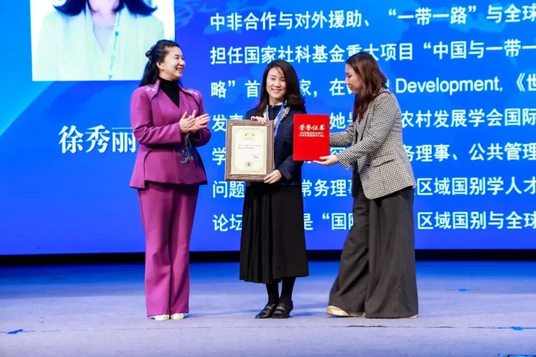 上:区域国别学博士点论证会;中:区域国别学学位点建设与质量保障会召开;下左:学科带头人李小云教授受邀2025年全国高校区域国别学人才培养与学科建设联盟第七届年会并作主旨发言;下右:徐秀丽教授获第二届全国区域国别学女学者杰出成果奖