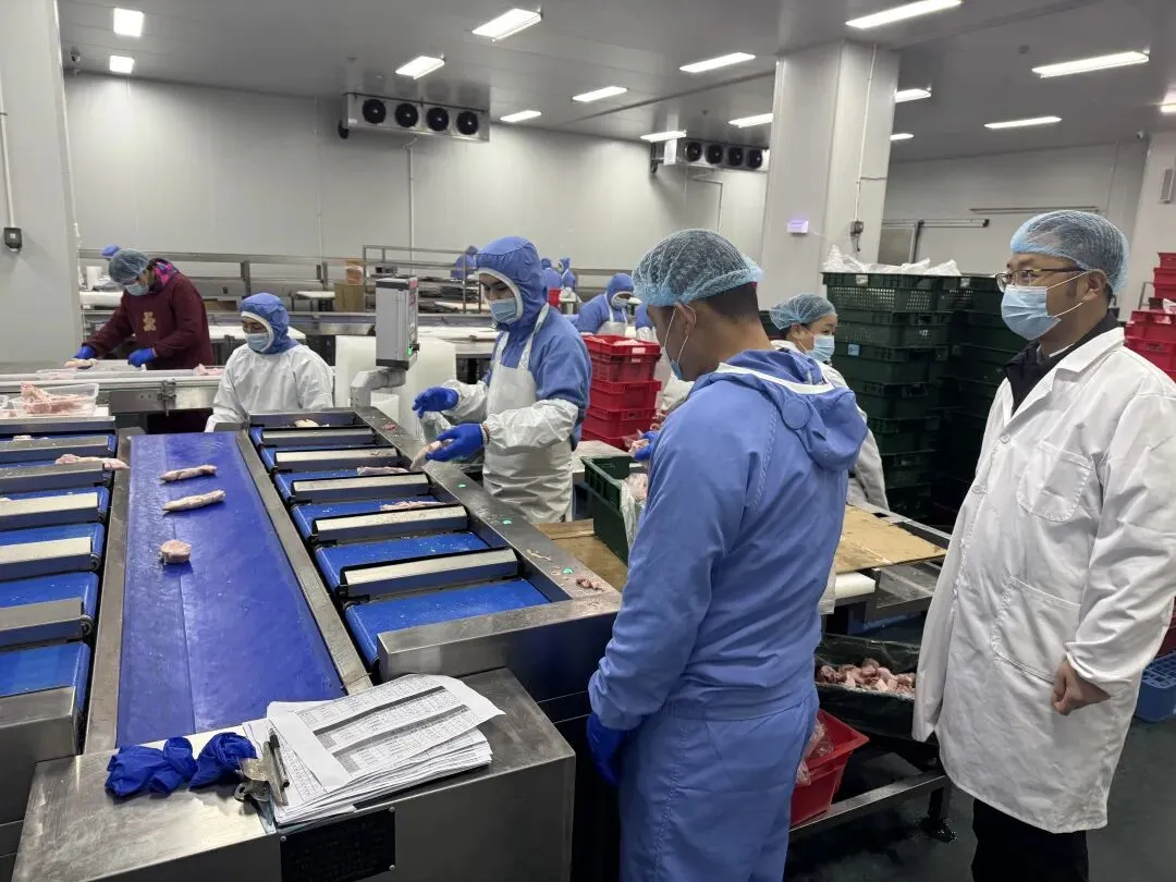 调研中,陈陶胜总经理一行实地参观了滇荟农业的精细分割加工车间、产品展示区,深入了解其进口加工设备运作、全流程品控体系及乌金猪生态放养模式。作为华东地区领先的无抗/有机黑猪全产业链企业,滇荟农业坚守生态养殖理念,依托中科院、多所农业大学技术支撑,构建了从保种、养殖到加工、销售的完整产业链,其严苛的品控标准、高效的加工产能、多元化的高端产品体系让调研团队深受启发。