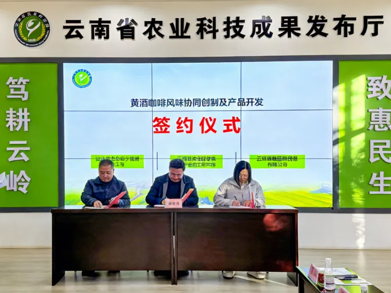 代表团还与云南省农科院农产品加工研究所的科研团队、云南朗奥国际贸易有限公司的市场团队围绕黄酒咖啡融合发展深入洽谈,三方立足各自优势,达成深度合作共识,现场签署合作协议,正式启动黄酒咖啡风味协同创制及产品开发项目。
