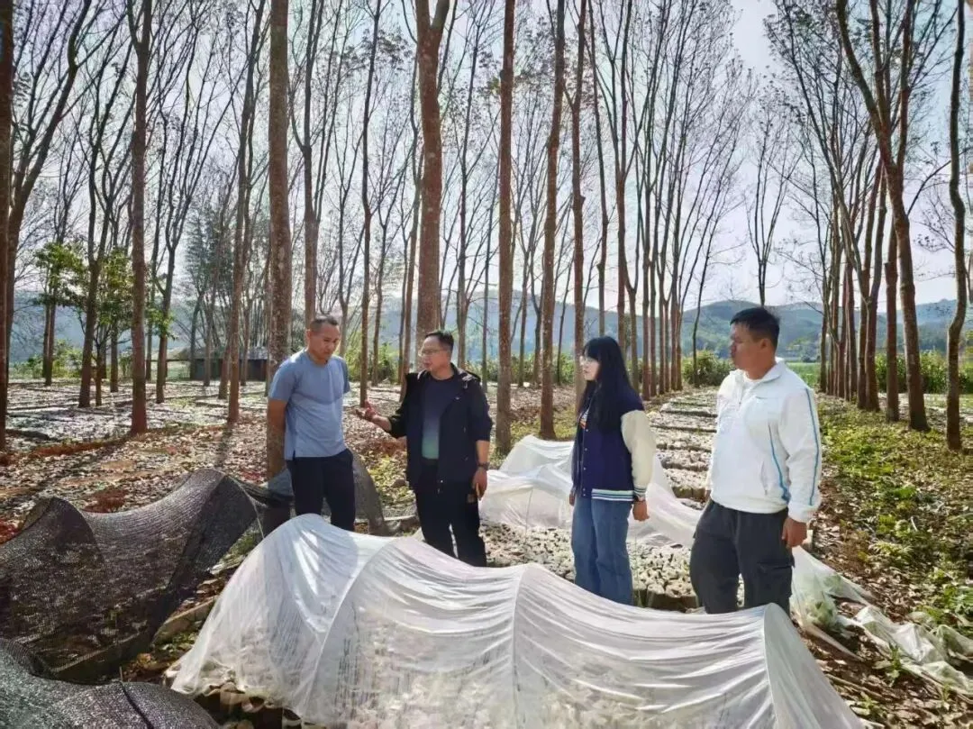 2月12日,县林下经济专班橡胶林下组到勐伴镇调研可可种植地块,并查看可可育苗情况。