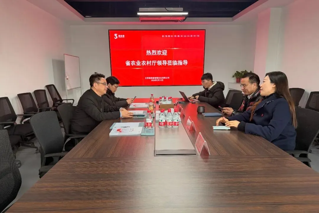2月12日,江苏省农业农村厅市场与信息化处处长马军、江苏省互联网农业发展中心副主任魏祥帅一行莅临江苏叁拾叁智慧农业有限公司,江苏叁拾叁董事长张梓强、总经理刘卫民全程接待,双方围绕农业AI创新应用与丰景农服大模型开展专题调研。