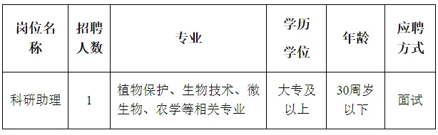 蕉类作物病害研究团队隶属于广西农业科学院植物保护研究所/广西作物病虫害重点实验室,以香蕉等(亚)热带作物病害的病原与寄主互作分子机制及防控技术研究为主要研究方向。现根据工作需要,面向社会公开招聘科研助理(编制外工作人员)1名。现将有关事项公告如下: