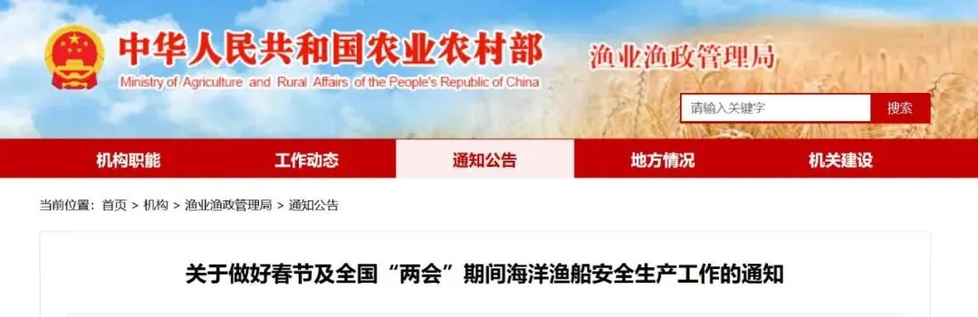 渔业渔政管理局关于做好春节及全国“两会”期间海洋渔船安全生产工作的通知