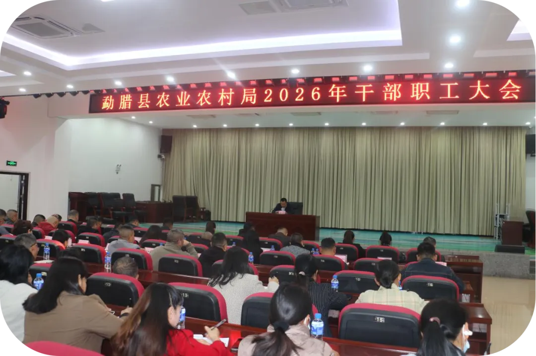 2月14日上午8:30分,勐腊县农业农村局在县总工会一楼报告厅组织召开《勐腊县农业农村局2026年干部职工大会》,县农业农村局局机关、站所、中心、校干部职工198人参会,全体参会人员认真听取局党组主要负责人对2025年度的工作总结和对2026年的未来工作计划。