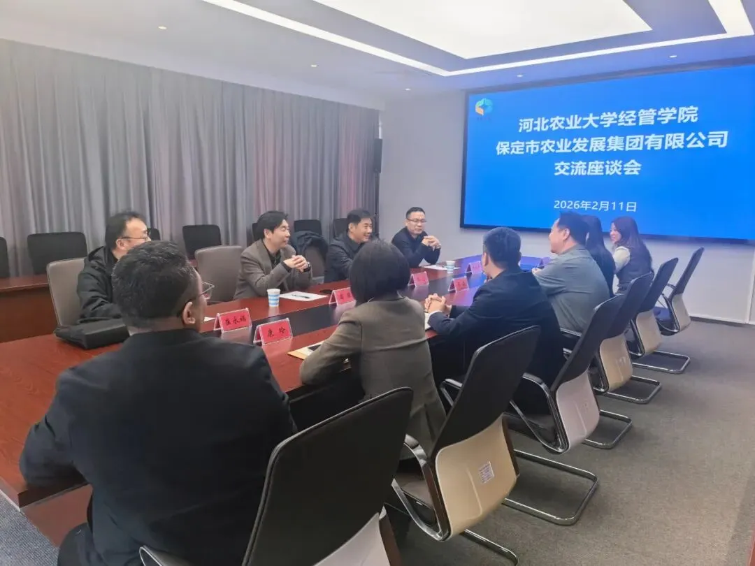 为拓展毕业生就业渠道,深化校企合作,2月11日,学院一行前往保定市农业发展集团开展访企拓岗专项调研和座谈交流。学院院长路剑、党委副书记高强、正处级辅导员袁永军、学科带头人崔永福;保定市农发集团党委书记、董事长于磊,集团总经理侯英武,副总经理梁美娟、康玲,农发集团党群人事部负责人郭云霞,农发集团综合管理部负责人王亚蒙参加活动。
