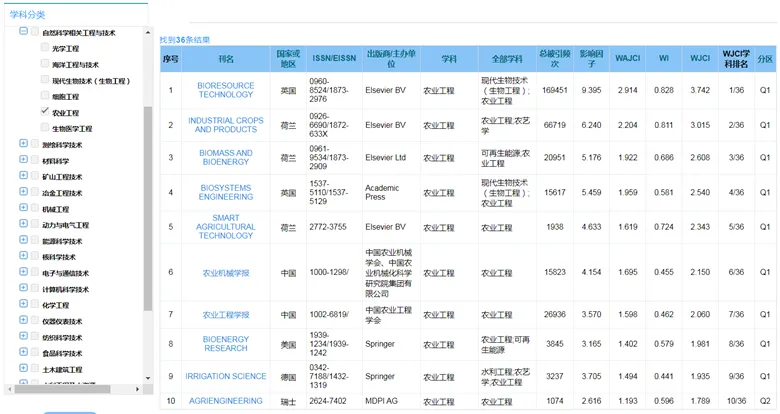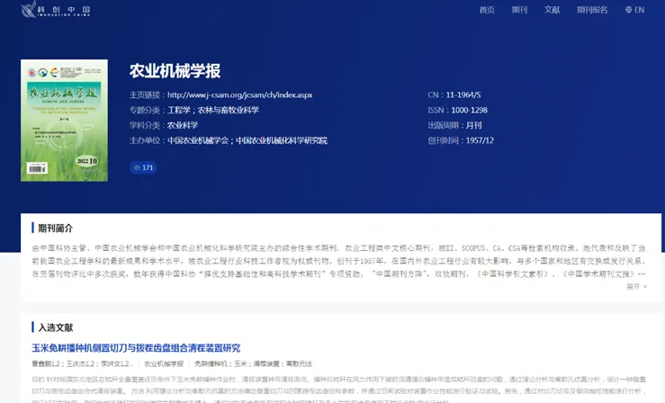 科技部中国科学技术信息研究所发布的最新数据显示,学报影响因子为3.368,农业工程学科排名第1;