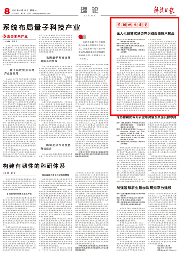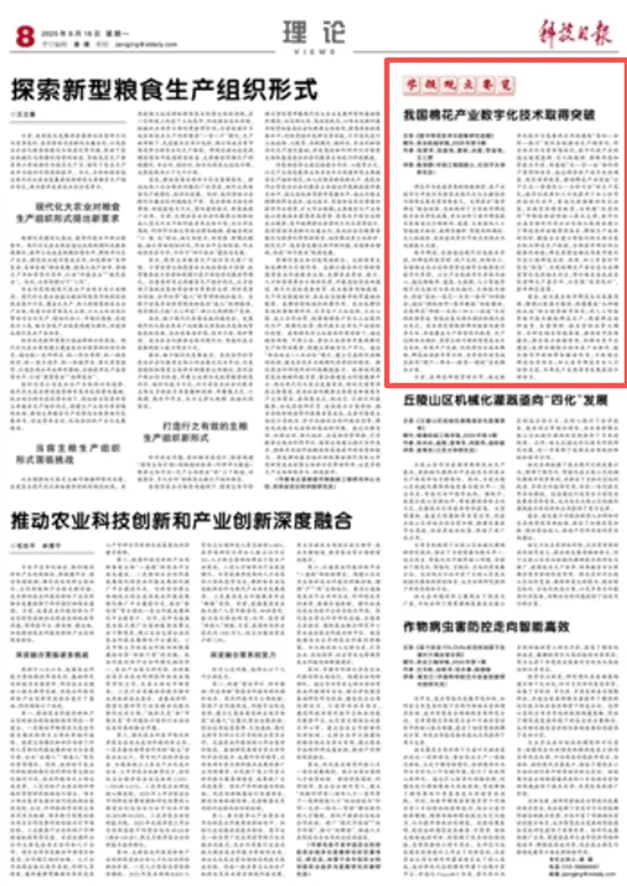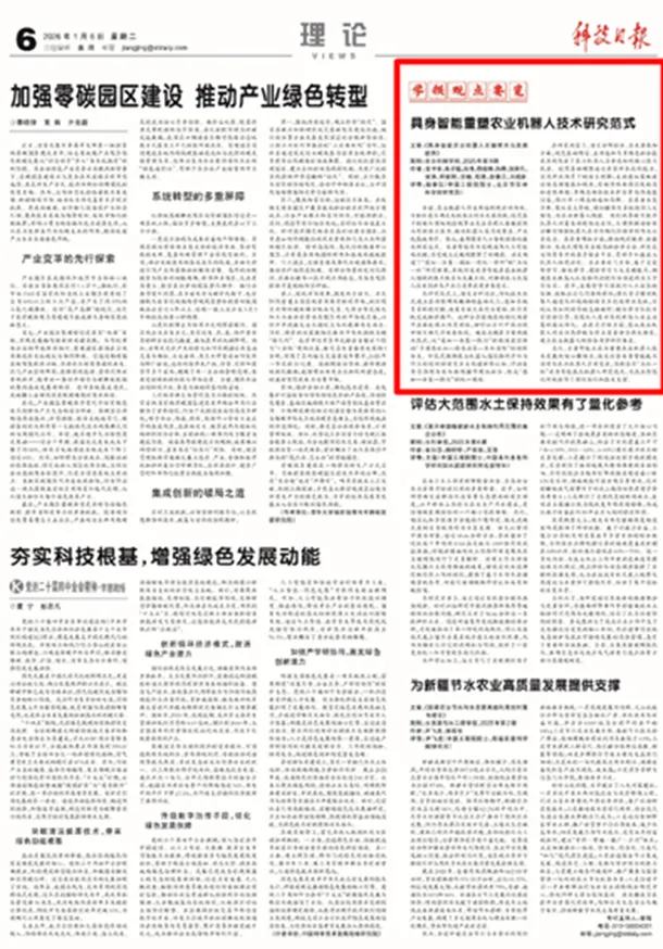 中国工程院院士罗锡文、陈学庚、赵春江领衔科技论文获《科技日报》“学报观点要览”栏目连续推介。
