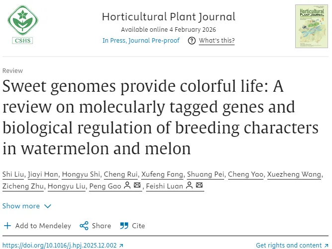 近日,Horticultural Plant Journal在线发表了东北农业大学栾非时教授团队题为“Sweet genomes provide colorful life: A review on molecularly tagged genes and biological regulation of breeding characters in watermelon and melon(甜蜜基因组赋予多彩生活:西瓜和甜瓜育种性状的分子标记基因与生物调控综述)”的综述。