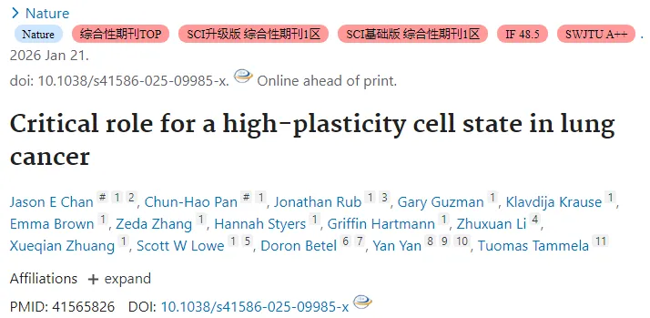 肺癌细胞可塑性是肿瘤进展与治疗耐药的关键驱动因素,现有放化疗、靶向治疗难以阻断细胞状态转换,晚期患者预后较差。高可塑性细胞状态(HPCS)被证实是细胞状态转换的核心枢纽,但针对该状态的靶向策略尚不成熟。研究旨在明确HPCS在肺癌进展中的功能,评估靶向HPCS的治疗效果,并揭示其调控肿瘤异质性与耐药的分子机制。