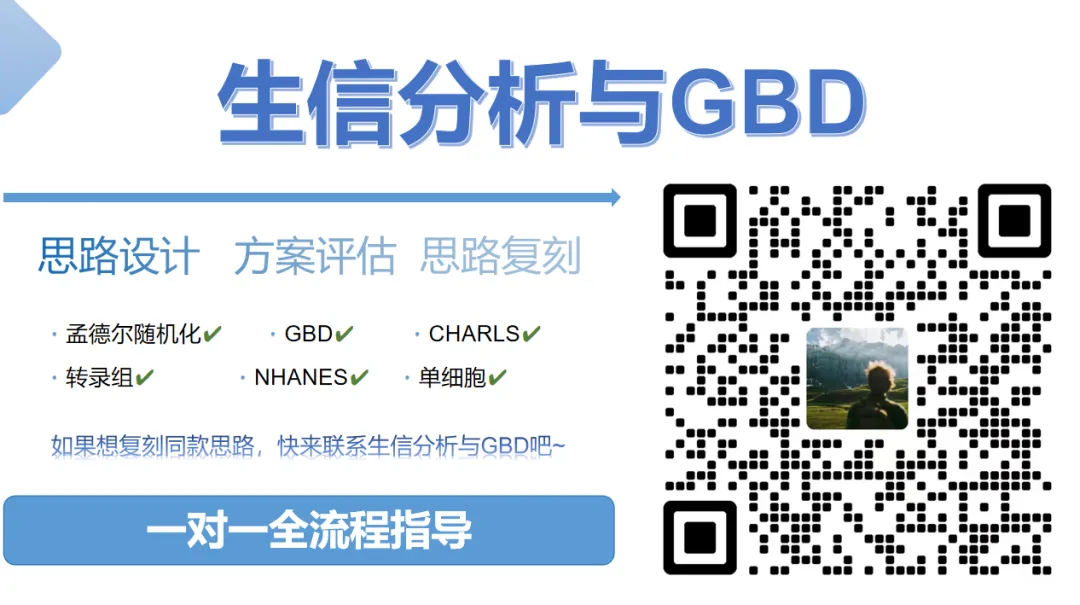 如果你也想利用GBD、机器学习、孟德尔随机化、CHARLS/NHANES等数据库进行生信分析,欢迎关注并后台咨询!