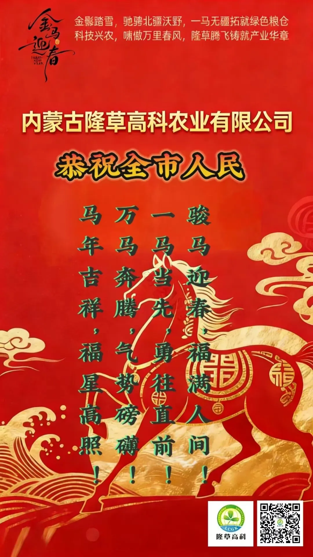 2026马年新程,隆草高科将以龙马精神启新局,一马当先攻难关,万马奔腾拓疆土,锐不可当、乘势而上!继续深耕草业、坚守初心,以草为芯,策马扬鞭,以一粒良种守护生态安全,以产业振兴助力乡村发展,在广袤北疆续写绿色荣光,共赴锦绣前程!