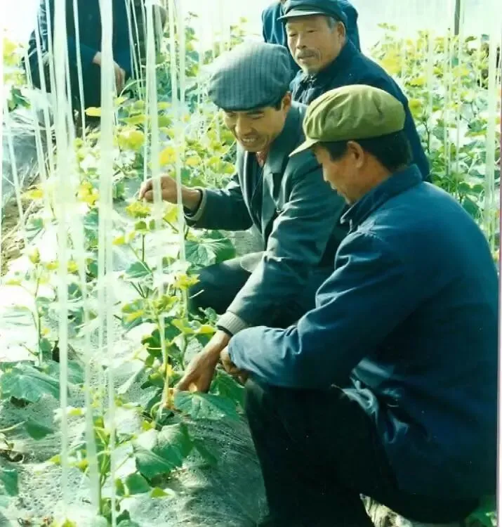三元朱村请来东北技术员,指导大棚黄瓜种植。