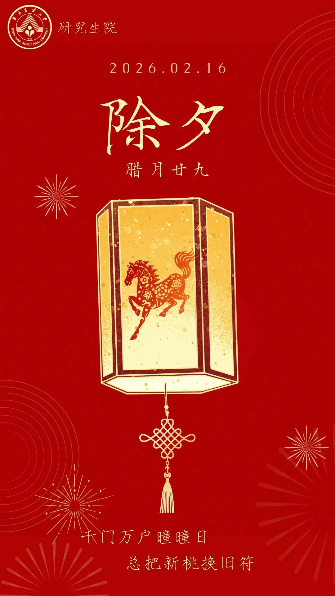 >华南农业大学研究生院祝您除夕快乐!
