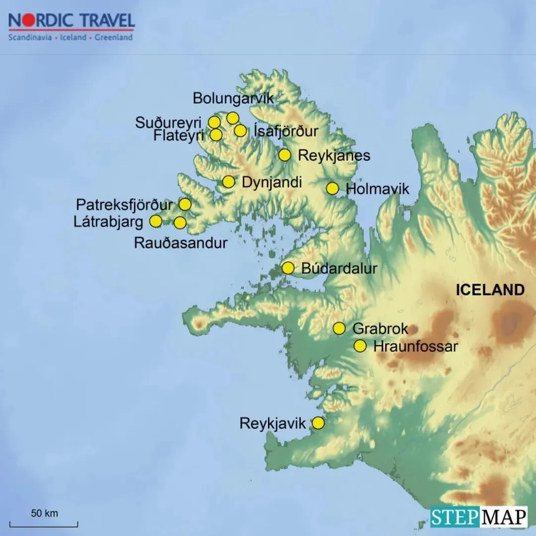 Látragbjarg是冰岛最西边的海岬,如下图所示,该区域外的在121-180米水深范围是大西洋狼鱼的括主要产卵场(Látragrunn)。