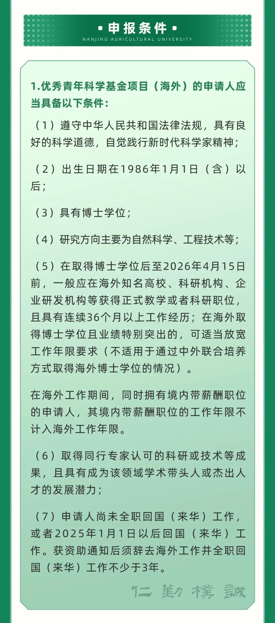 待遇也忒棒:南京农业大学诚邀您申报2026年海外优青项目