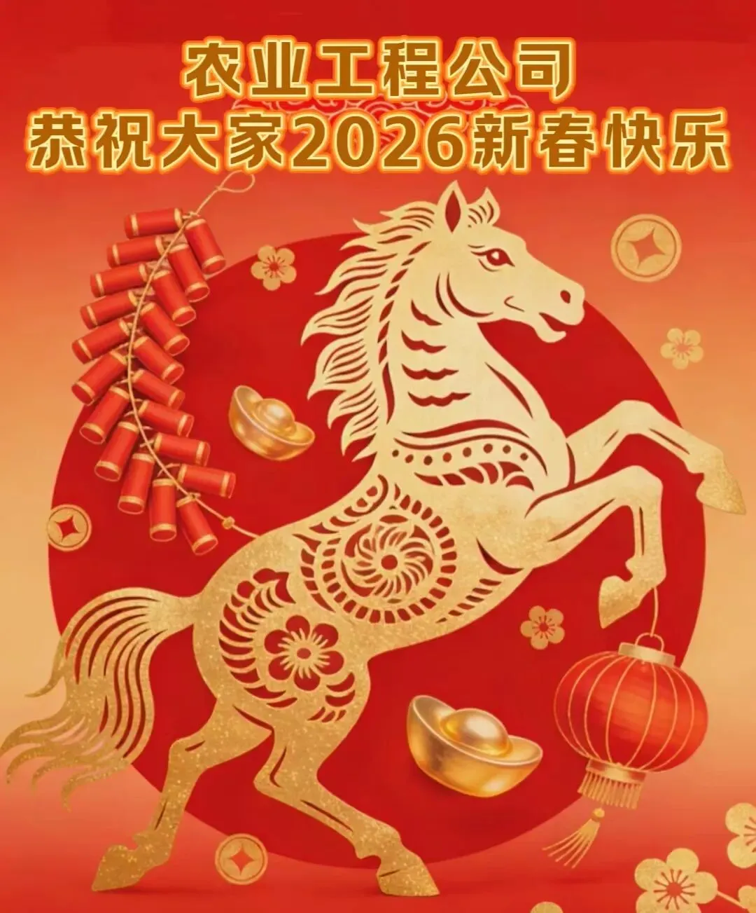 岁序常易,华章日新。值此丙午马年新春佳节来临之际,农业工程公司谨向全体干部职工、离退休老同志及家属致以诚挚的问候和美好的祝福!向一直以来关心支持公司发展的各级领导、合作伙伴和各界朋友表示衷心的感谢!