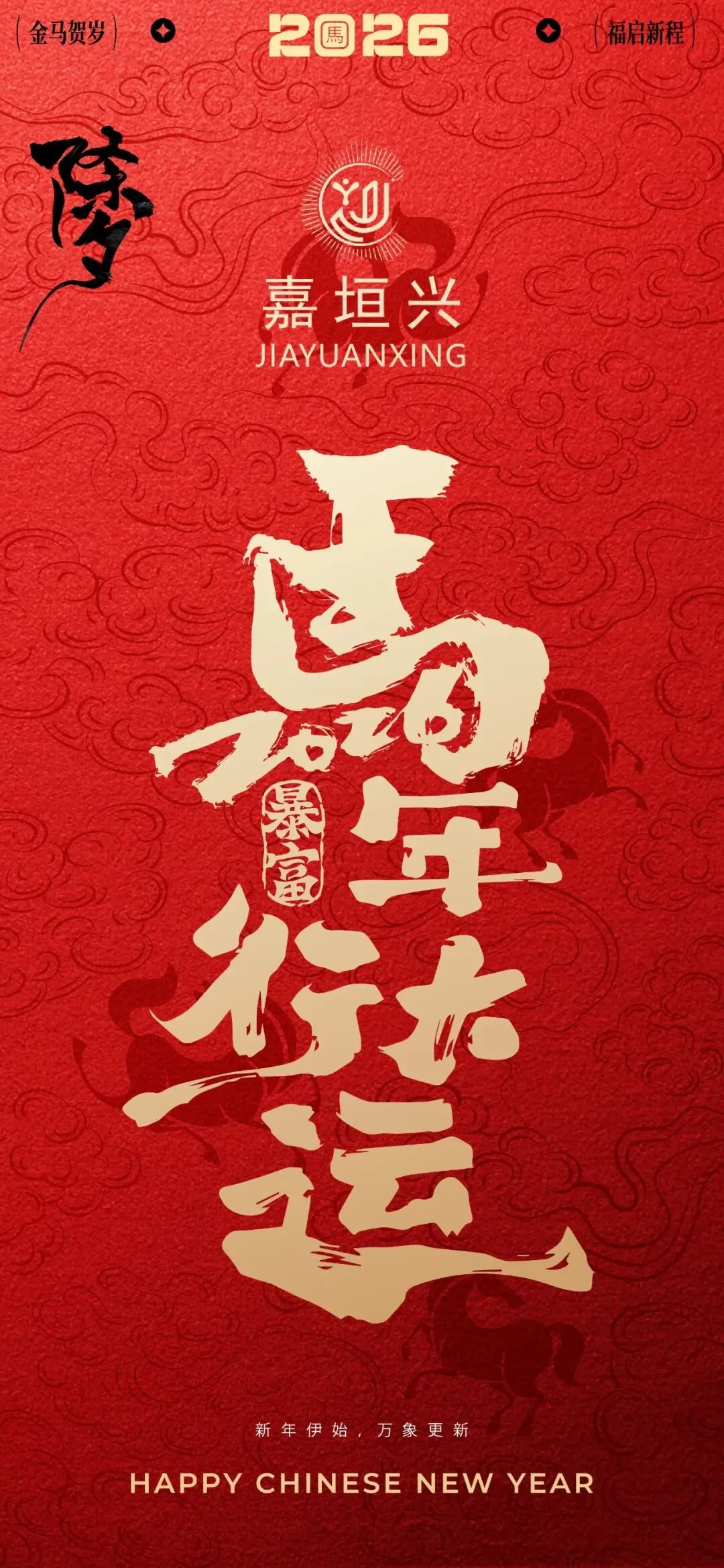 马,象征着奔腾、进取与力量。即将到来的 2026 年,是充满活力的马年。嘉垣兴愿做美好生活的 “千里马”,承载着大家的期盼,在科技兴农与城乡美化的道路上策马扬鞭。