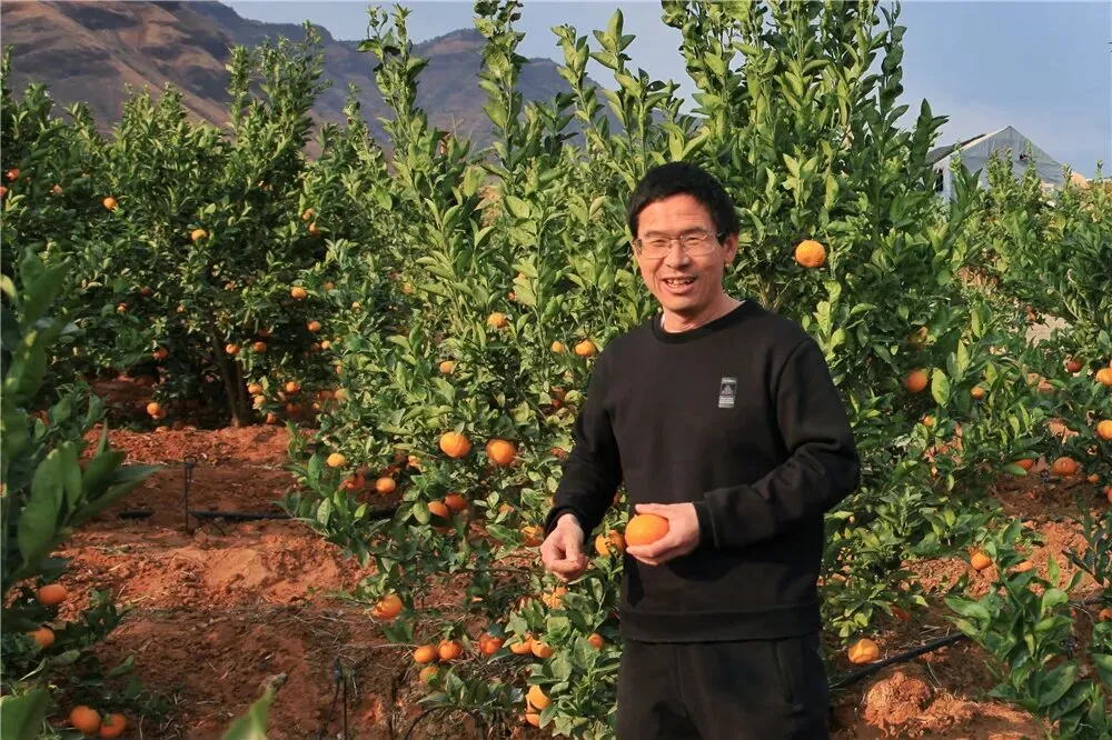 “风大对果面有影响。”我躲进树丛中,仔细看了看被大风蹂躏中的橘子,果然,果面有不少风藓,甚至连果形都变得有些扁平。“不对!”我忽然醒悟,问道:“这不是‘沃柑’吧?”我尴尬地笑了笑。我在广西见过“茂谷柑”,只是想当然地认为金沙江沿岸种的都是“沃柑”,而且与广西“茂谷柑”光滑的果面相比,这里的果面显得粗糙,就像一位江南女子忽然变成西北汉子,令我不敢相认。“最初是想种‘沃柑’的。”2017年,在程海种葡萄的杨永福看到浙江人林小波在片角种植“沃柑”一亩地八九万元的产值后,就四处找地,最后以1万元/亩的代价买下这片土地50年的经营权。后来因为担心“沃柑”发展速度太快,所以就选择了“茂谷柑”。
