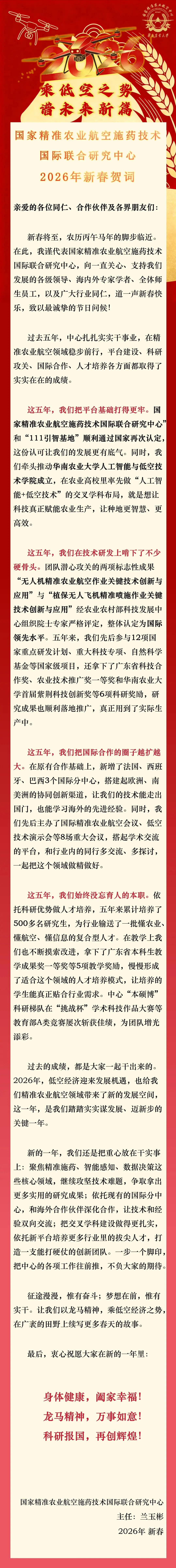 国家精准农业航空施药技术国际联合研究中心恭祝大家新春快乐!