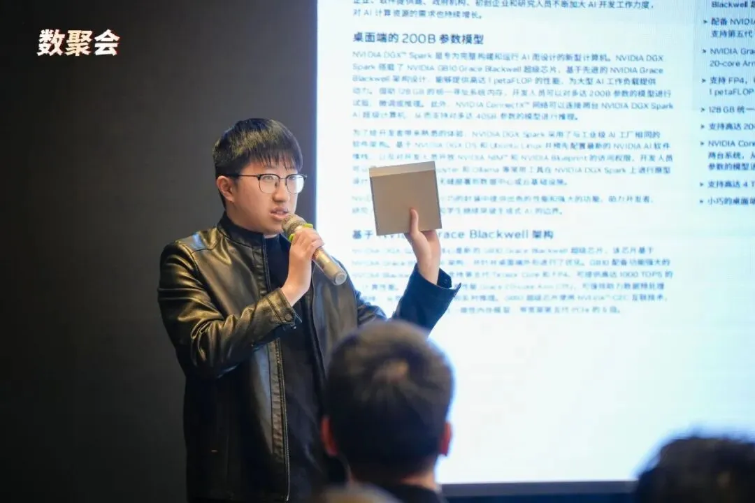 陈圣坤带来的“桌面AI超级计算机NVIDIA DGX Spark”,以1P FLOP性能、支持200B参数模型的硬核实力,展现了AI算力设备的前沿突破,让现场观众近距离感受黑科技魅力。