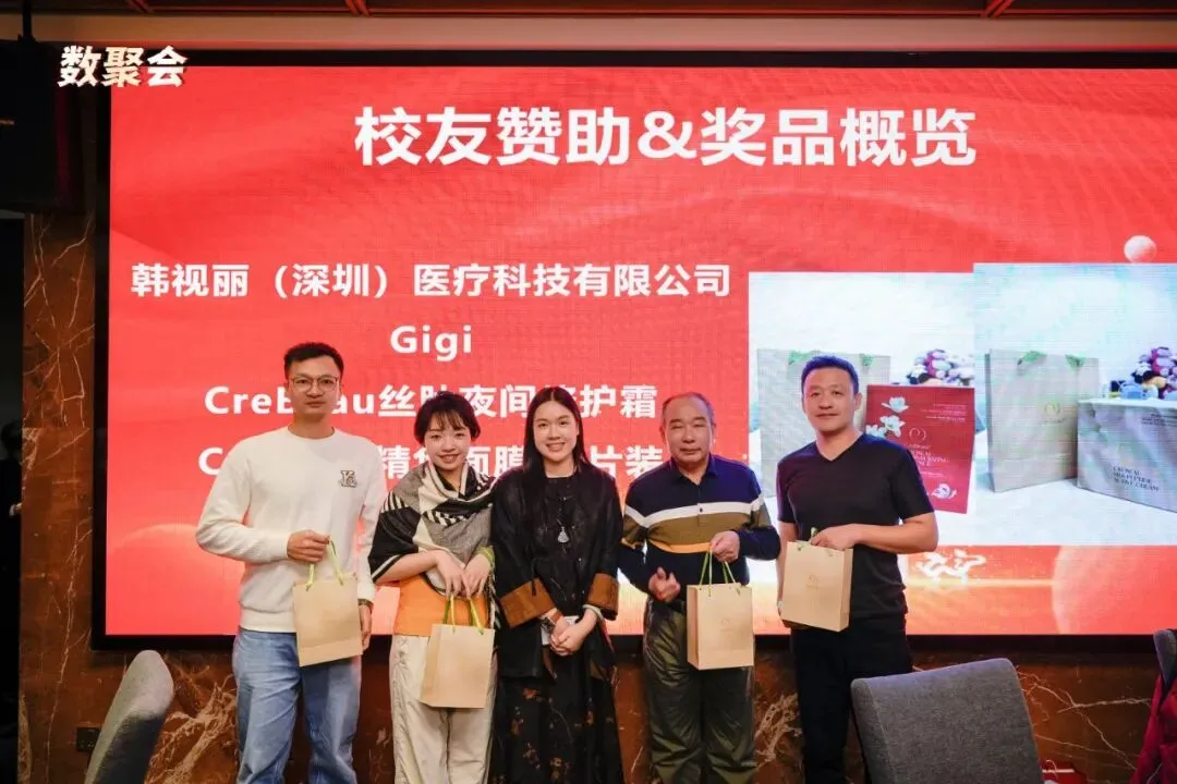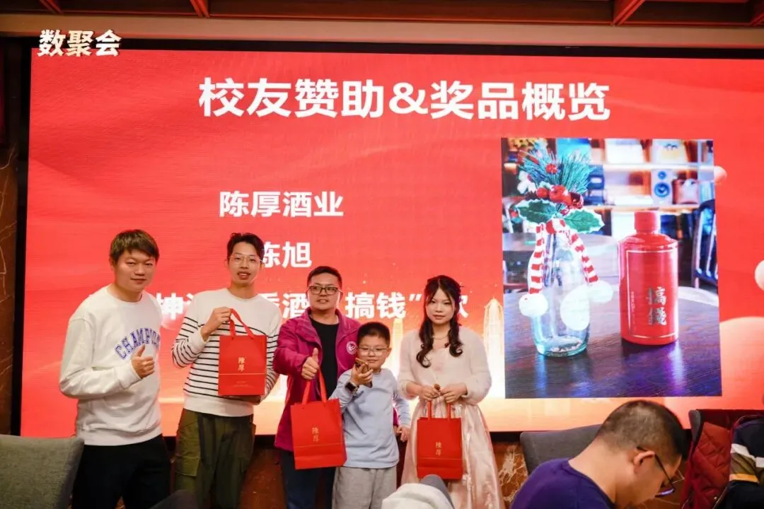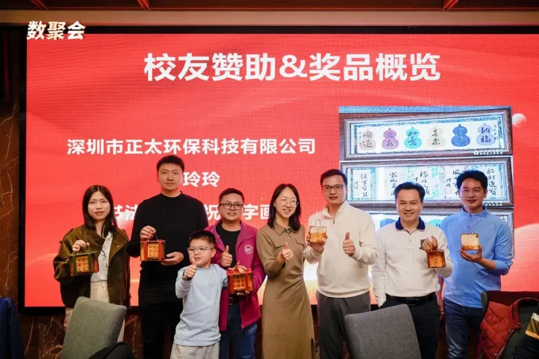 茶歇时分,校友们三五成群,畅谈职场感悟、共享行业信息;合照留影环节,大家笑容定格,记录下这场跨越时光的相聚。晚宴现场更是暖意融融,暖场互动热闹非凡,多轮抽奖将氛围推向高潮,文创小礼品与不停加码的神秘大奖一一送出,校友们在美食与欢笑中重温校园情谊,共话未来合作可能。