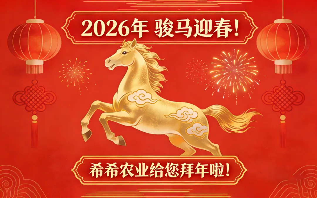 值此2026年农历丙午马年大年初一,希希农业全体家人,向长期以来信任与支持我们的广大种植户朋友、合作伙伴及农业同仁,致以最诚挚的新春祝福!