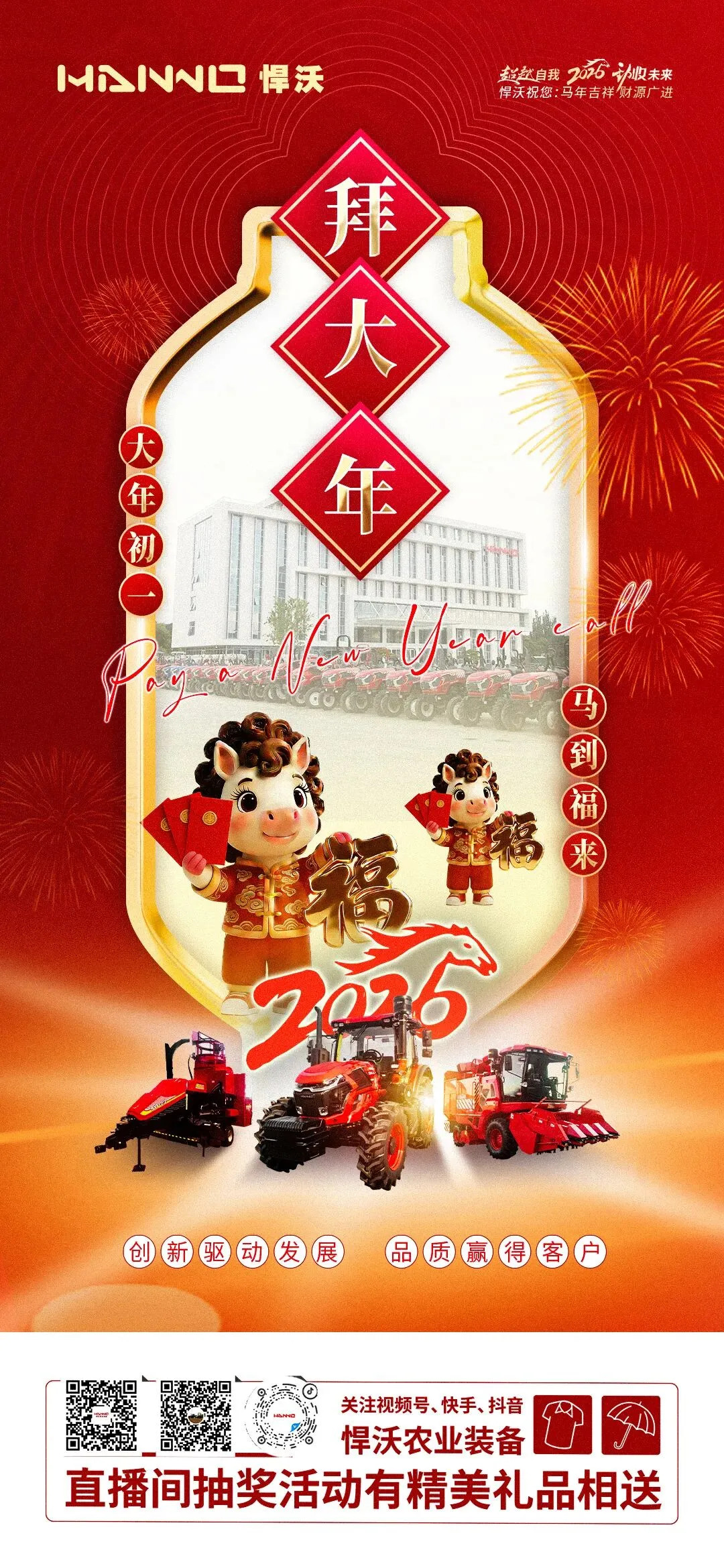 大年初一开门红,瑞气盈门福满堂!悍沃农业装备给您拜年啦!祝大家新年行大运,发大财!