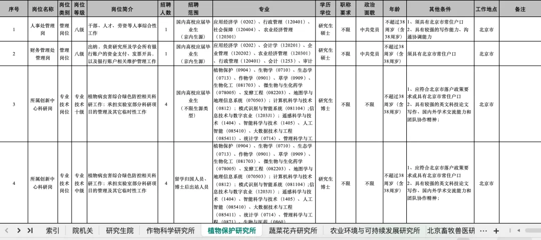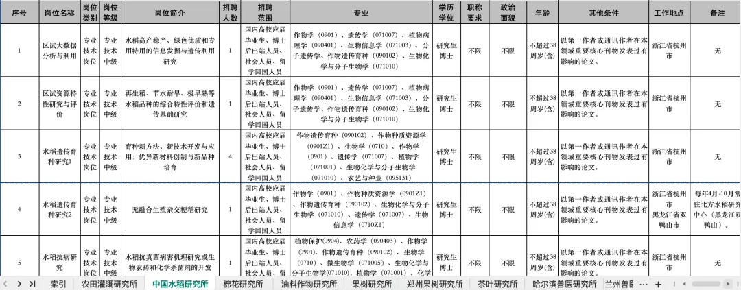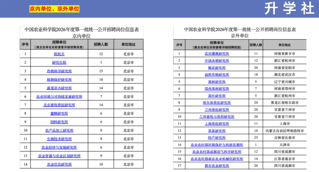 中国农业科学院2026年度第一批统一公开招聘公告:
