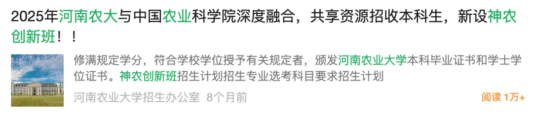 B、河南农业大学(神农创新班)——生物育种科学、动物医学、植物保护、人工智能、生物技术