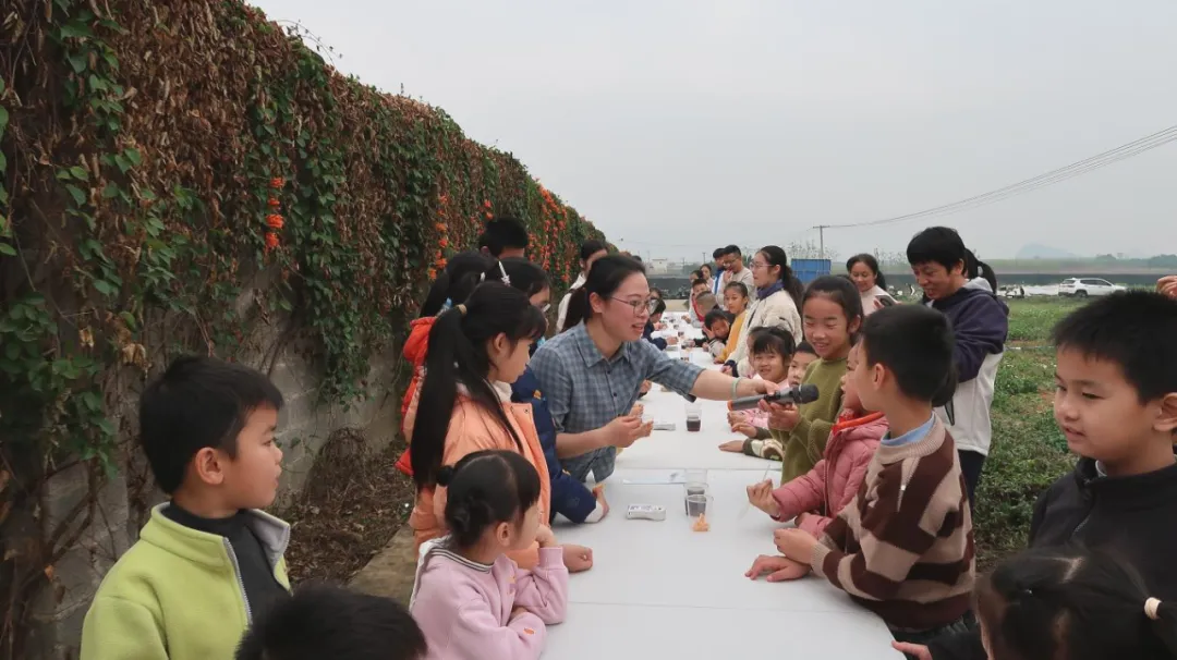 活动设置了亲子厨艺协作、糖度测定与制糖体验、木薯淀粉含量观测及趣味互动游戏4项环节。家长与孩子们一同搭窑烤制、操作仪器探究甘蔗制糖原理、采收并分析木薯样本,在传统技艺与科学实践的动手乐趣中,不仅让孩子们学到了知识,更让亲子情感在欢乐互动中深度升温。